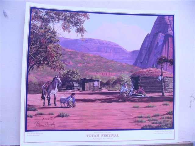 Totah Festival. Farmington, NM. September 3-4- 5, 1993. "Blue Corn Summer". Poster art by Willie Murphy. Poster signed by Artist.