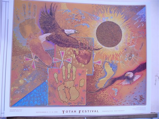 Totah Festival. Farmington, NM. September 4-5-6, 1998. "HEIR BORN TO US ALL". Poster art by Roger W Deale, Jr. Poster signed by Artist.