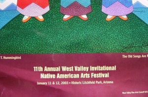 Jesse Hummingbird. "The Old Songs Are Magical". 11th Annual West Valley Invitational. Native American Arts Festival. January 11 & 12, 2003 Historic Litchfield Park. AZ. Signed by the Artist. 24" w" x 36 h".
