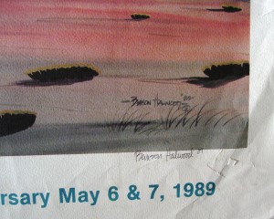 Bien Mur Indian Market Center. Pueblo Of Sandia, Albuquerque, NM. Fifteenth Anniversary. May 5th & 6th, 1990. "Longhorn Group" Poster art by Duane Dishla. Poster signed by Artist. 19 1/2"x 24"3/4" .tear at bottom right.